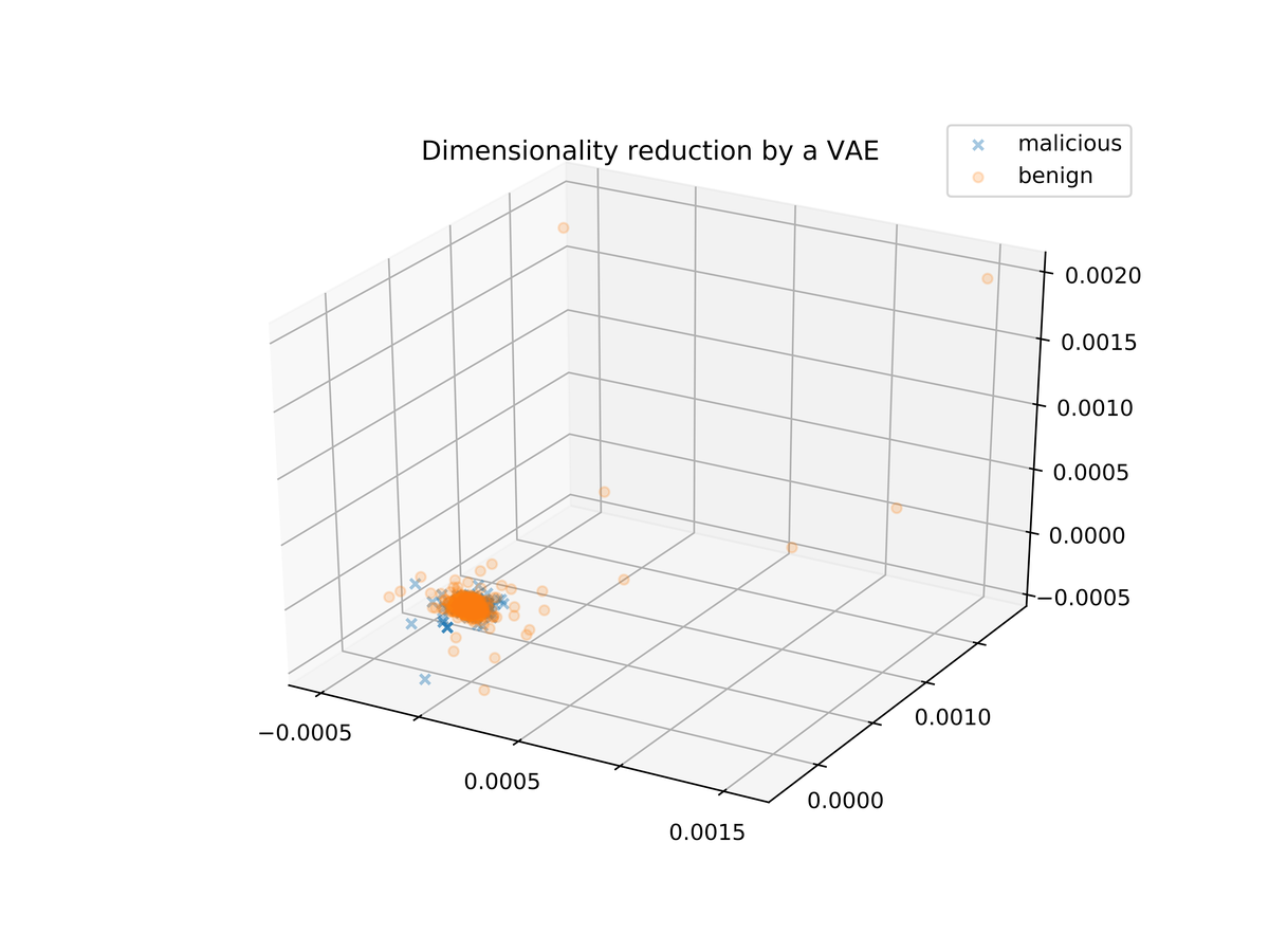 Besides PCA, a VAE (Variational Autoencoder) can also be used to reduce the dimensionality of the data. We experimentally built and trained a VAE that reduces our data to three dimensions. The architecture and hyper-parameters of the encoder and decoder of the VAE were chosen to match the best-performing MLP model.